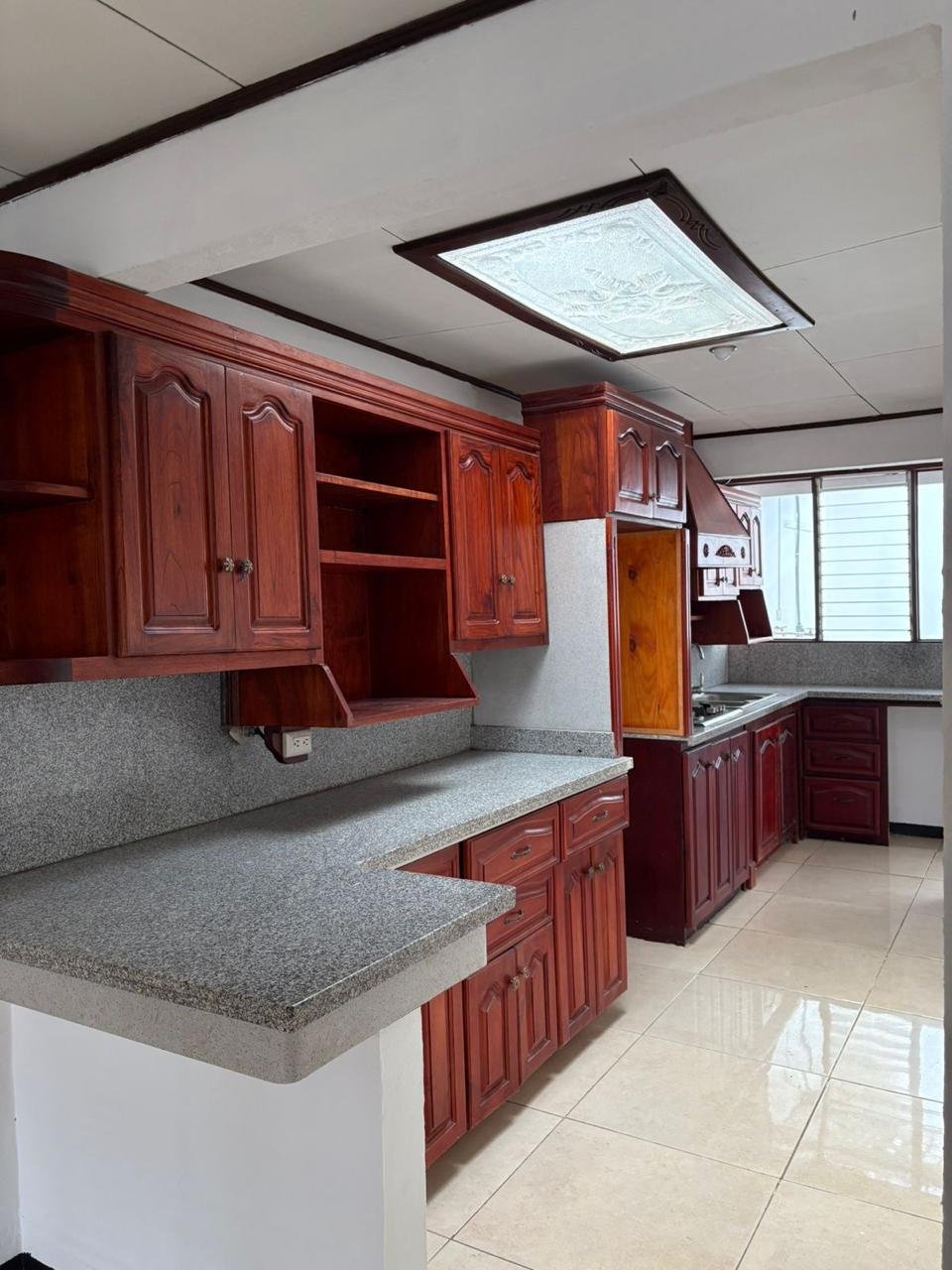 -Cocina con sobre granito, muebles en cedro y plantilla empotrada.